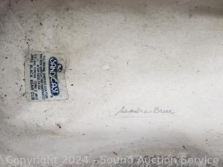 Signed on the underside Sandra Brue. Has a few broken claws. 6" H x 15.5" x 7.5".