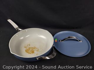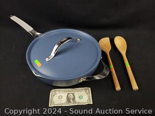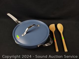 Lot #0324: Tramontina Blue 12" Multipurpose Pan w/Steamer Insert & 2 Utensils