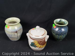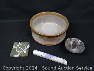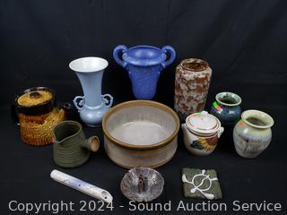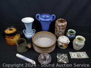 Many pieces are signs. up to 10.5" tall. 9" dia. Don't see any major issues. Refer to photos for more details.