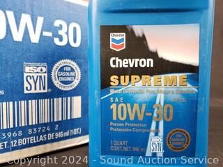 Lot #0104: 12pk Chevron Supreme SAE 10W-30 1qt Motor Oil