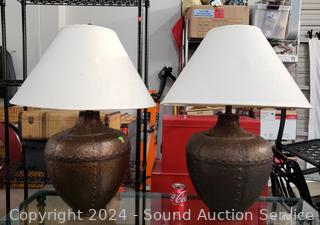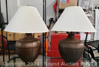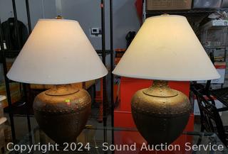 Lot #0055: 2 Bronze Finish Pottery 30" Table Lamps