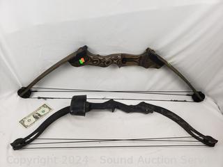 Black 30", looks to be missing parts, heavy use, don't see a pull weight, appears to be functional. Browning 40", 45-70LB? Various wear, rust spots, appears to be in functioning condition.