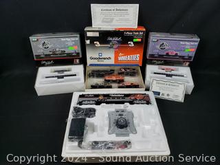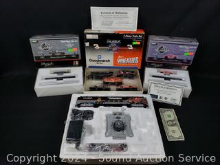 Lot #0267: (2) Dale Earnhardt 3pc, (1) 7pc & Intimidator Locomotive HO Scale Train Sets