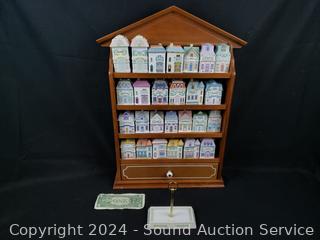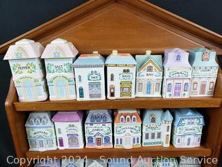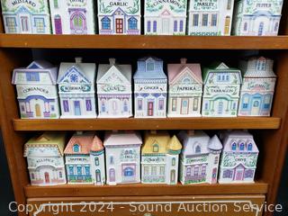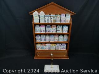 Lot #0268: 24pc Lenox Porcelain Village Spice Jar Set w/Salt & Pepper Shakers & Rack