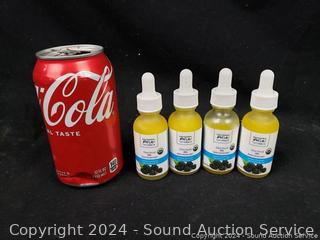 1oz/30mL bottles. 3 are full or mostly full, 1 is partial. Very cold in here and oil has solidified.