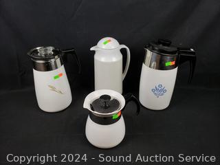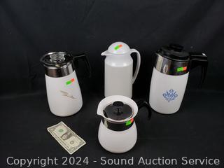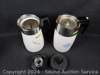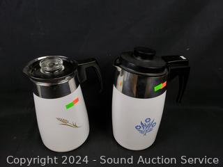 3 are Corning, metal enamel, 2 carafes, 2 percolators.