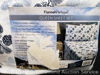 Lot #0120: 4pc Flannel From Portugal Queen Sheet Set