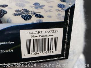 Blue Pinecone print, 1 flat, 1 fitted, 2 pillowcases.