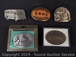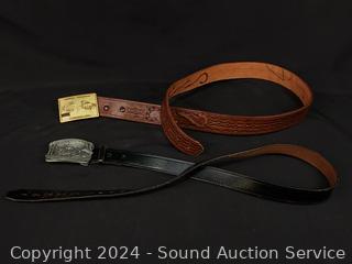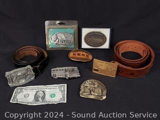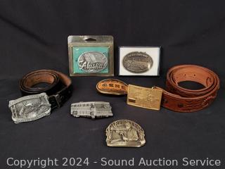 Lot #0179: 7 Belt Buckels & 2 Leather Belts