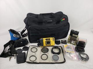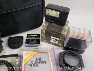 Assorted filters, flash, Minolta AF Weathermatic camera, Minox 35GT camera, Nistar A180 flash, refer to photos for more details.