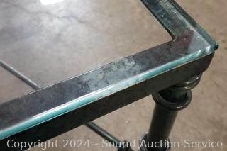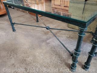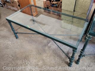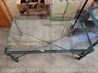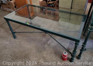 Lot #0058: Green Painted Wrought Iron Glass Top Coffee Table