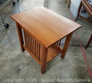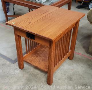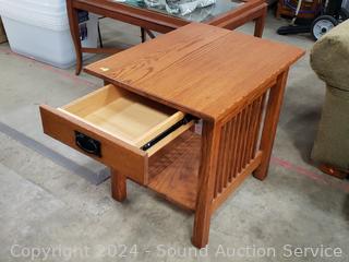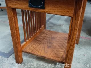 Lot #0315: Mission Style Oak Single Drawer 2-Tier Side Table