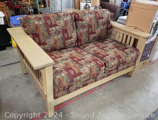 Lot #0027Y: Nice Flexsteel Oak Upholstered Loveseat