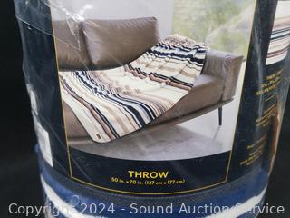 Lot #0113: Pendleton Savanna Stripe Ivory Plush Throw
