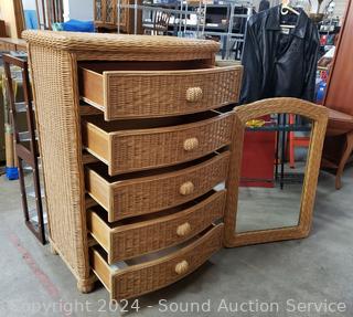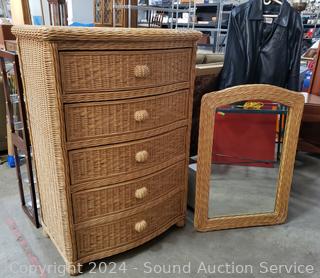 Lot #0053: San Angelo 5-Drawer Wicker Wove Dresser w/Matching Wall Mount Mirror