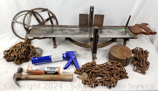 Lot #0234: Vintage Miter Saw Box w/Disston 28" Saw, Chain Caulk Gun & More - UPDATED PHOTOS