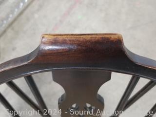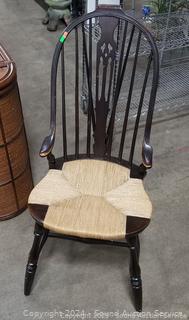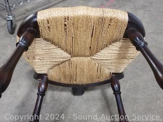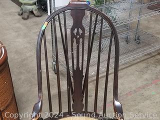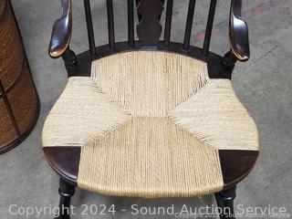 Lot #0221: Vtg. Dark Stained Finish Rush Woven Seat Spindle Back Chair