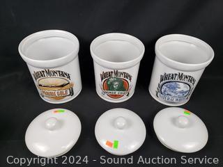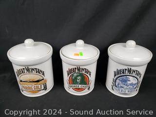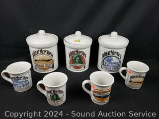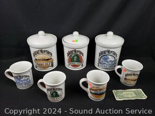 (3) 7.75" H x 6.75" canister set, 4 mugs. Don't see any issues.