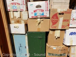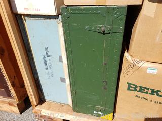 Each vault approx. 94" H x 60" x 84". Refer to photos for vault contents, what you see in the photos is what we see, we have not gone through vaults. Preview online only, contents of vaults may not be gone through. Blankets & Vaults not included. As is, no refunds. $100 deposit required at the close of the auction upon winning a vault, refunded after complete removal of vault contents.