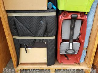 Each vault approx. 94" H x 60" x 84". Refer to photos for vault contents, what you see in the photos is what we see, we have not gone through vaults. Preview online only, contents of vaults may not be gone through. Blankets & Vaults not included. As is, no refunds. $100 deposit required at the close of the auction upon winning a vault, refunded after complete removal of vault contents.