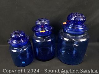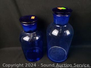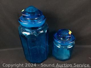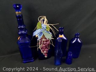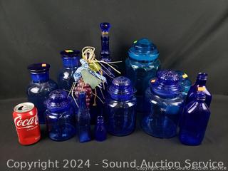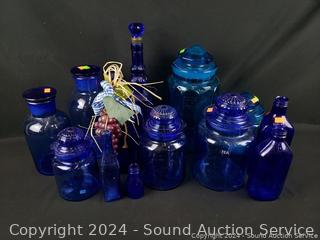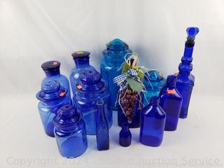 Lot #0175: 13pc Cobalt/Turquoise Glassware Bottles, Canisters