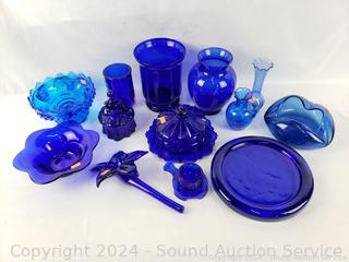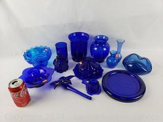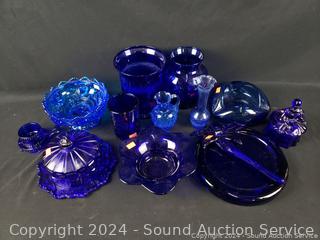 Lot #0172: 14pc Assorted Cobalt Glassware