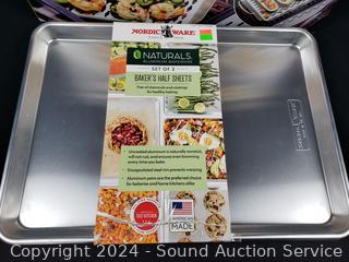 Lot #0207: 2pk Nordic Ware Baking Sheets & 2pk Stainless Grill Baskets