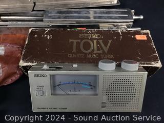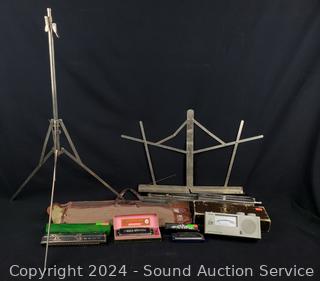Lot #0093: 3 Harmonicas, 2 Music Stands, Seiko Tolv Tuner