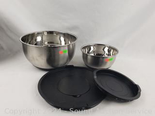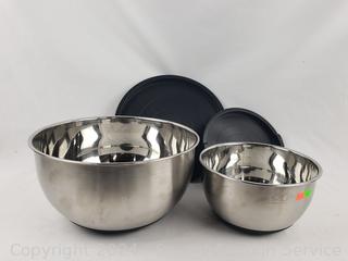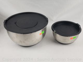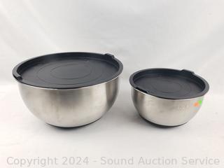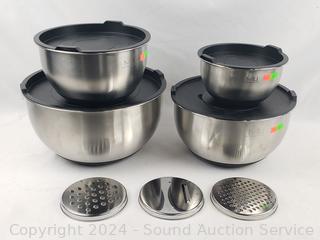 Lot #0197: 4pc Miu Stainless Steel Mixing Bowl Set w/Lids & Grater Attachments