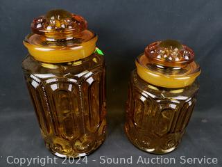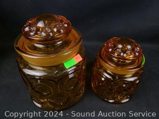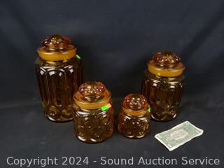 Lot #0153: 4pc Vintage Marigold Glass Thumbprint Canister Set