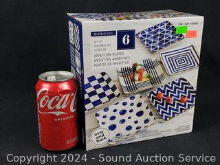 Lot #0204: 6pk Over & Back Blue Appetizer Plates