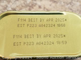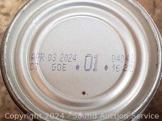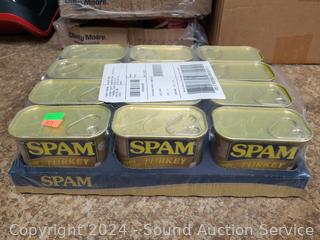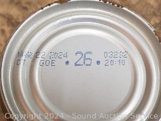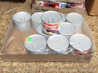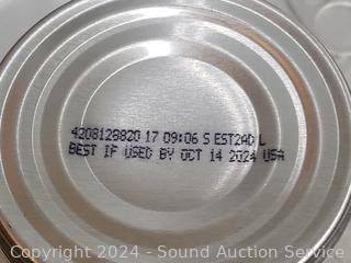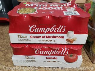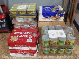 12pk Cambells 10.5oz Cream of Mushroom Soup best by Mar. 2024, 12pk Turkey Spam, best by April 2025, 10pk Banner Sausage Best by Oct 2024, 22ct Dinty Moore 20oz Beef Stew best by best by May 2025, 23ct 15oz Fruit Cocktail best by May 2024, 12pk Cambells 10.75oz Tomato Soup best by April 2024, 12pk 14.5oz Swanson Chicken Broth best by April 2024, 6pk 2LB 9oz Beef Flavored Bits 10/09/2018.