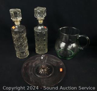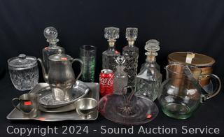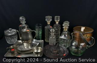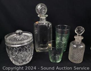 Decanters, pitcher, crystal jar, ice bucket, tray, highball glasses. Refer to photos for more details.