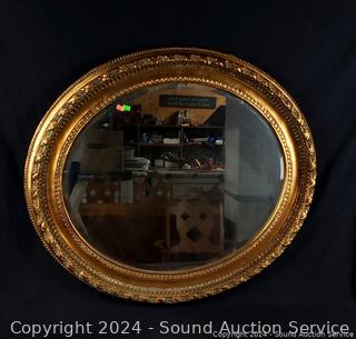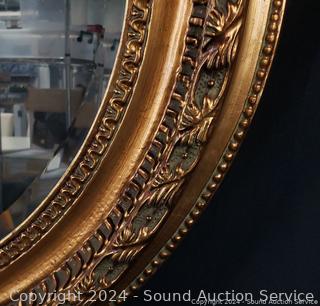 Lot #0236: Gold Framed Oval Beveled Mirror
