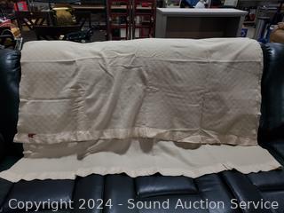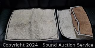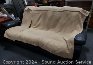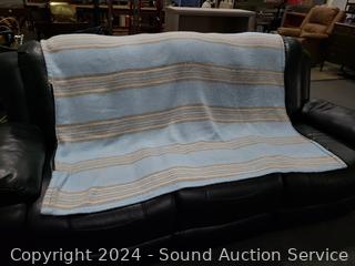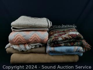 Brown 88" x 100" blanket, blue 70" x 60" throw, multi-color fringed throw 48" x 68", 2 quilted 26" x 40" shams, knitted 44" x 80" Afghan, brown 60" x 80" blanket. Don't see any major issues.