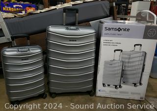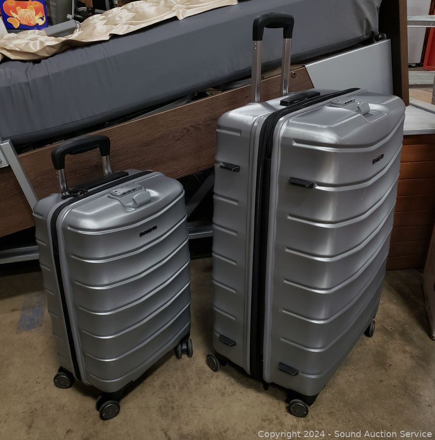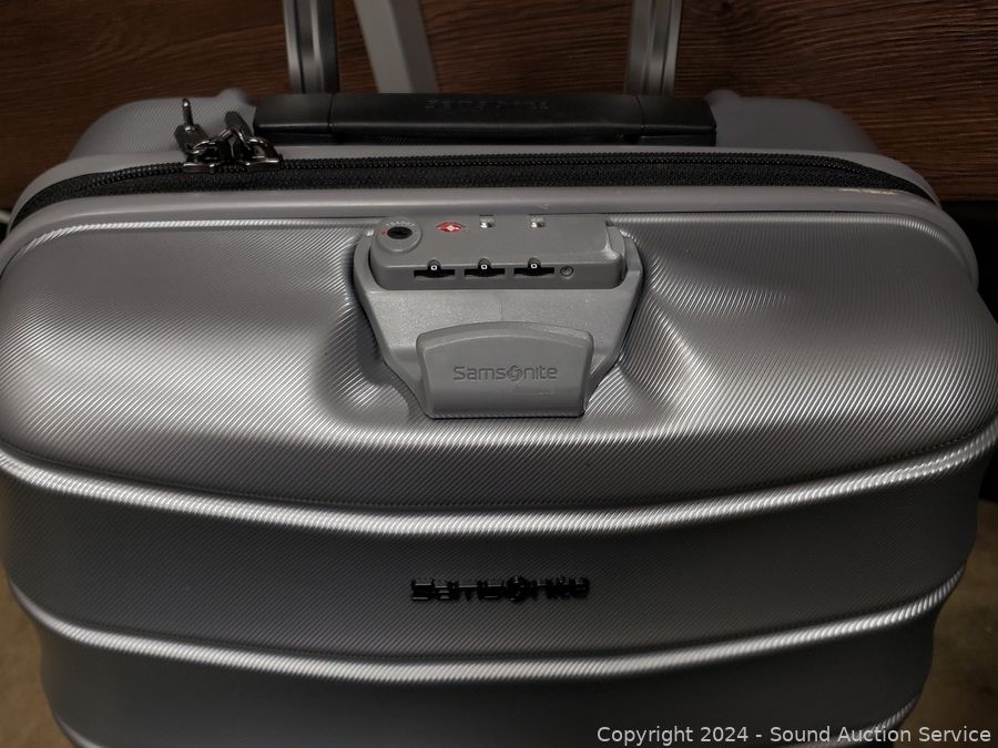 Lot #0177: 2 Samsonite Amplitude Silver Spinner Suitcases