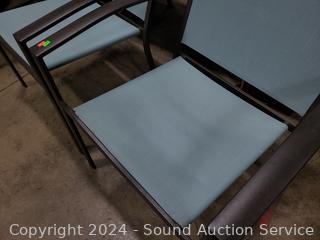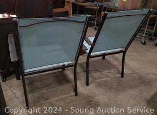 Lot #0012: 2 Teal Mesh Patio Steel Framed Patio Chairs