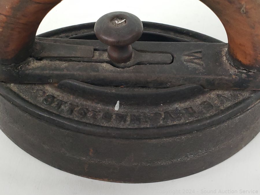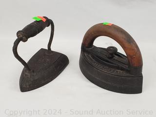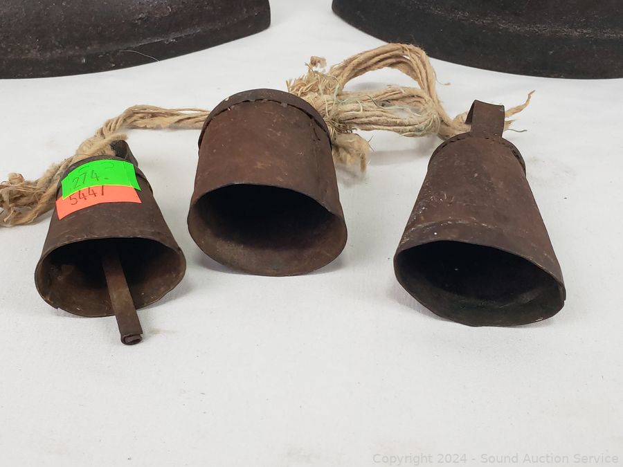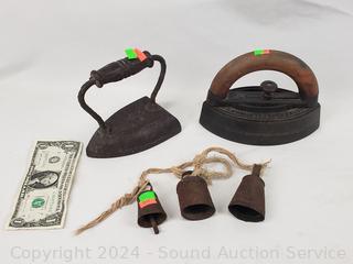 Lot #0274: 2 Vintage Sad Irons & Rustic Bells