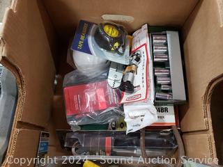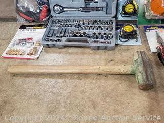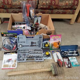 Tape measures, tree limber hardware, pliers, ear protection, ratchet strap, sockets, socket set & more. Many still in original packaging.