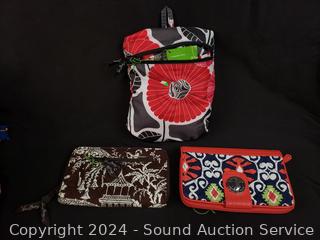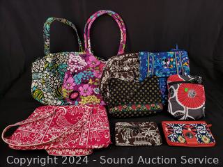 Lot #0087: 4 Vera Bradley Ladies Handbags, 3 Clutches & Collapsible Duffle