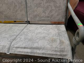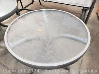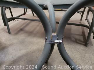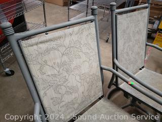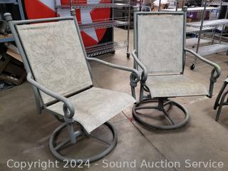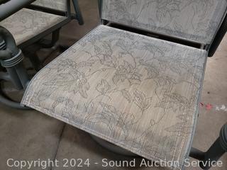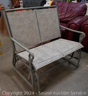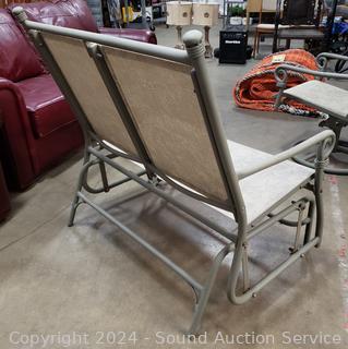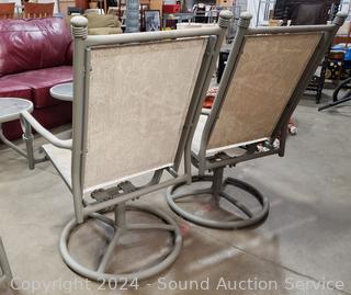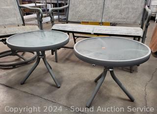 2 side tables 17" x 20" Dia bases of tables have been repaired at one point. 2 Swivel rocking chairs & glider loveseat.
