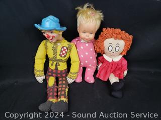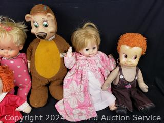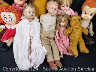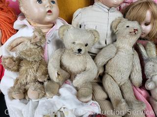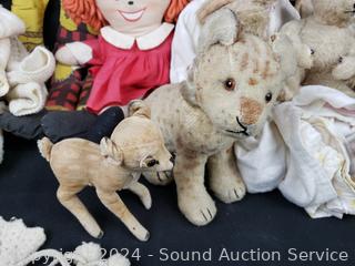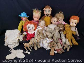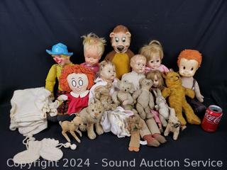 Lot #0313: Assorted Vtg. Dolls, Stuffed Animals, Doll Clothes