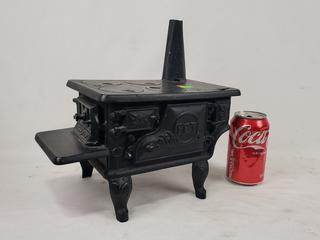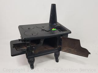 One door not shutting properly, no handles for burners, otherwise appears complete. 11" H x 11" x 6.5".