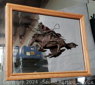 Lot #0067: Frederic Remington Oak Framed Mirrored "Chyenne" Sculpture
