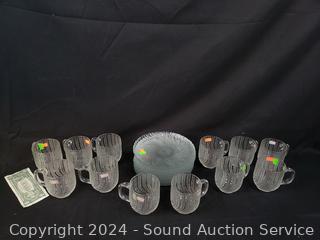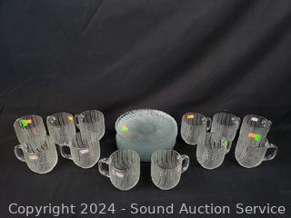 Lot #0072: Spiral Shell Clear Glass Cups & Plate Set