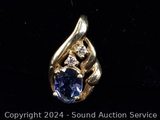 Lot #0079: 14K Gold Diamond & Blue Stone Pendant