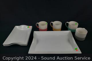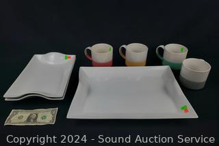 Lot #0184: 7pc Over & Back Stoneware, 4 Mugs & 3 Platters