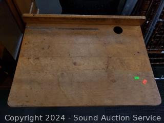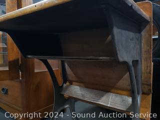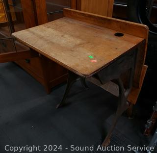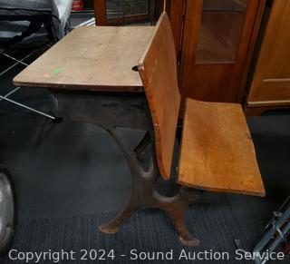 Lot #0026: Vintage Cast Iron Base Wood School Desk
