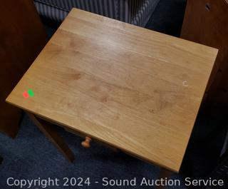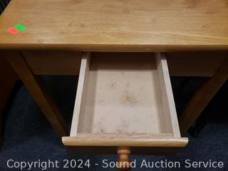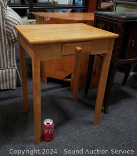 24" H x 18" W x 14" D. Some minor wear to finish, overall good condition.