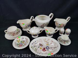 Lot #0111: 15pc Vernon Kilns May Flower Hand Painted China
